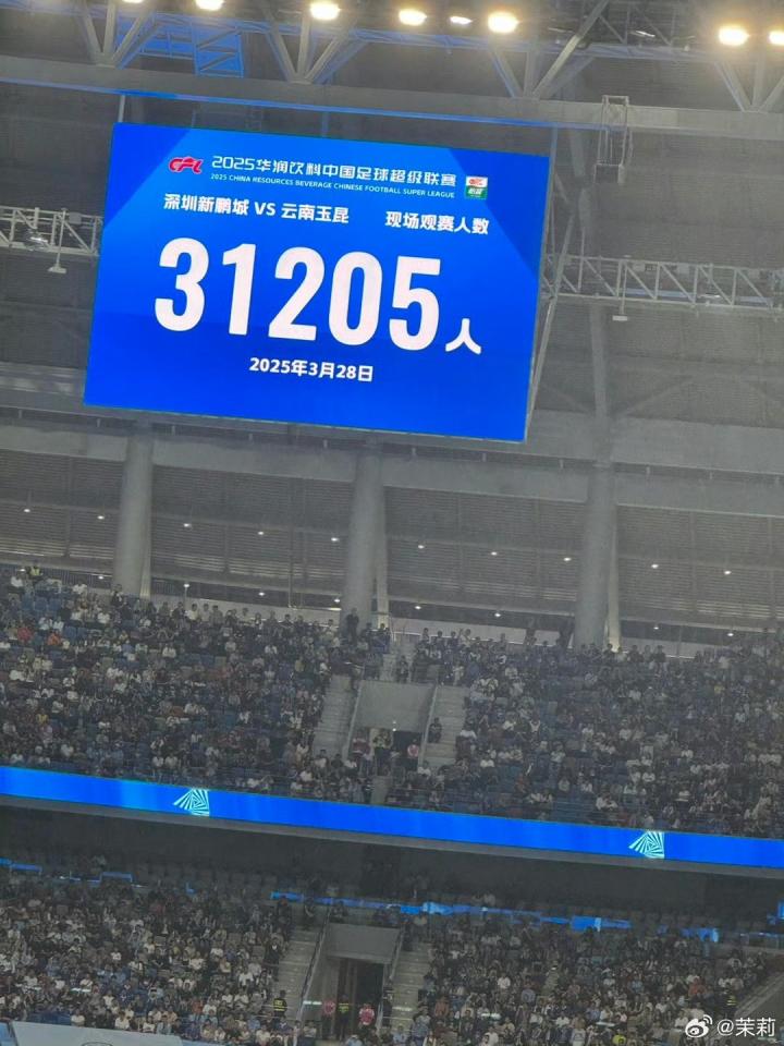 本赛季,深圳新鹏城前4个主场的观众人数分别是31205、30133、23926、23633人。