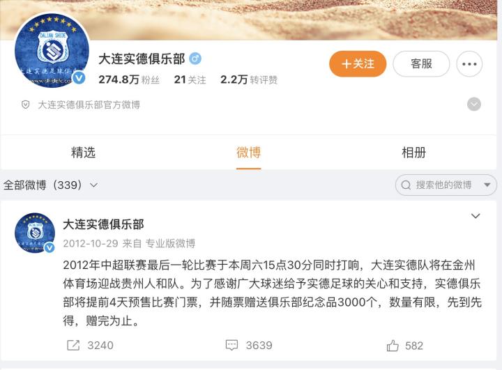 据悉大连人俱乐部解散后各平台账号所属权归于大连体育产业集团,微博、公众号均为账号所有者主动注销,目前抖音平台账号“大连人职业足球俱乐部”尚处正常状态。对比之下,此前解散的大连足球俱乐部微博账号如“大连实德俱乐部”、“大连超越足球俱乐部”均未选择注销。