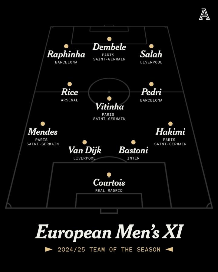 这必然是一支由欧冠四强球员主导的十一人阵容,另外还包括两名助力利物浦夺得英超冠军的核心球员。尽管皇家马德里本赛季表现(对他们而言)令人失望,库尔图瓦仍得以跻身其中。