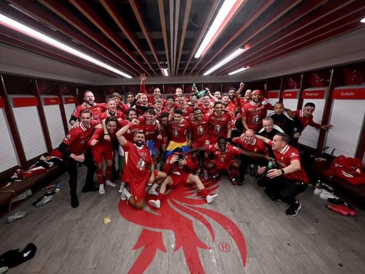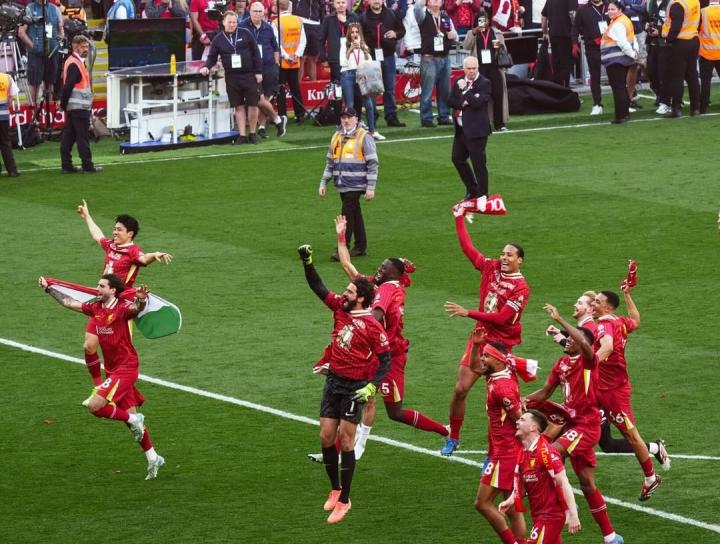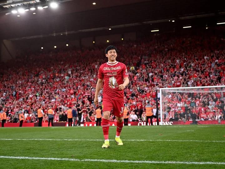 北京时间4月29日,利物浦中场远藤航在社交媒体分享了庆祝利物浦英超夺冠的照片。