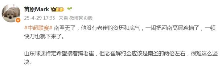 媒体人苗原写道:“南圣无了(南基一离任),他没有老崔的资历和底气,一闹把河南高层惹恼了,一顿快刀也就下来了。”