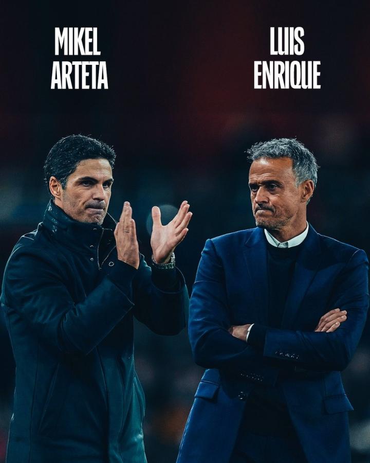 欧冠半决赛首回合,阿森纳将对阵巴黎圣日耳曼,阿尔特塔和恩里克将再次迎来交手,这是欧冠改制以来第三次出现两位西班牙教练在半决赛对决。