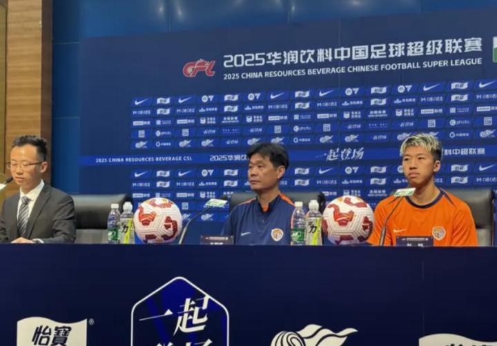 北京时间4月30日,在中超第10轮,青岛海牛客战山东泰山的赛前,海牛主帅李霄鹏和队员黄皓隽出席了新闻发布会。