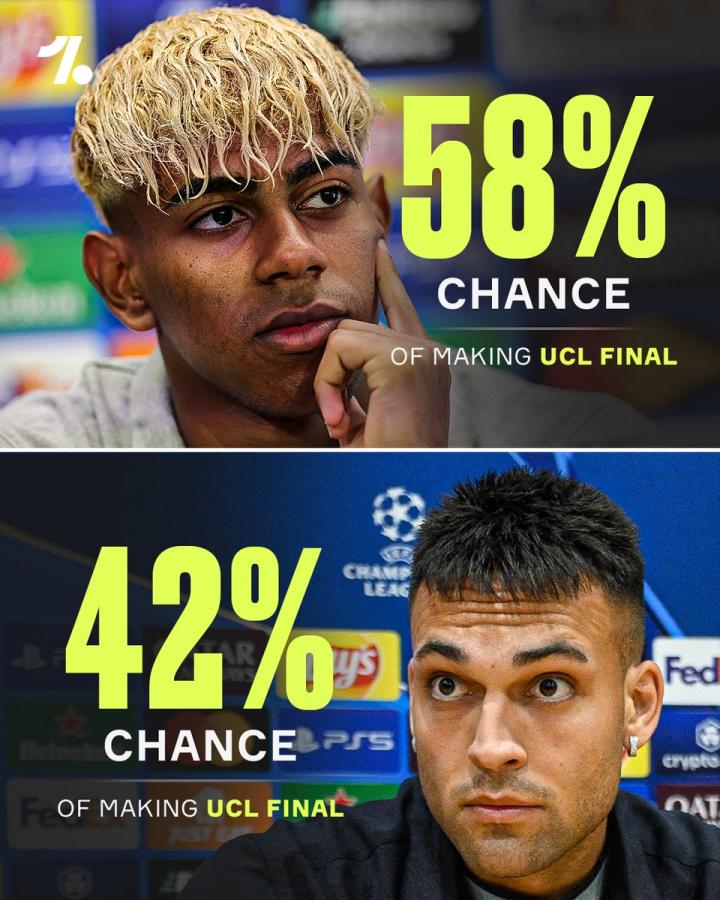 欧冠半决赛巴萨主场对阵国米赛前,Opta超级计算机预测了两支队伍晋级决赛的概率:巴萨晋级率58%,国米晋级率42%。