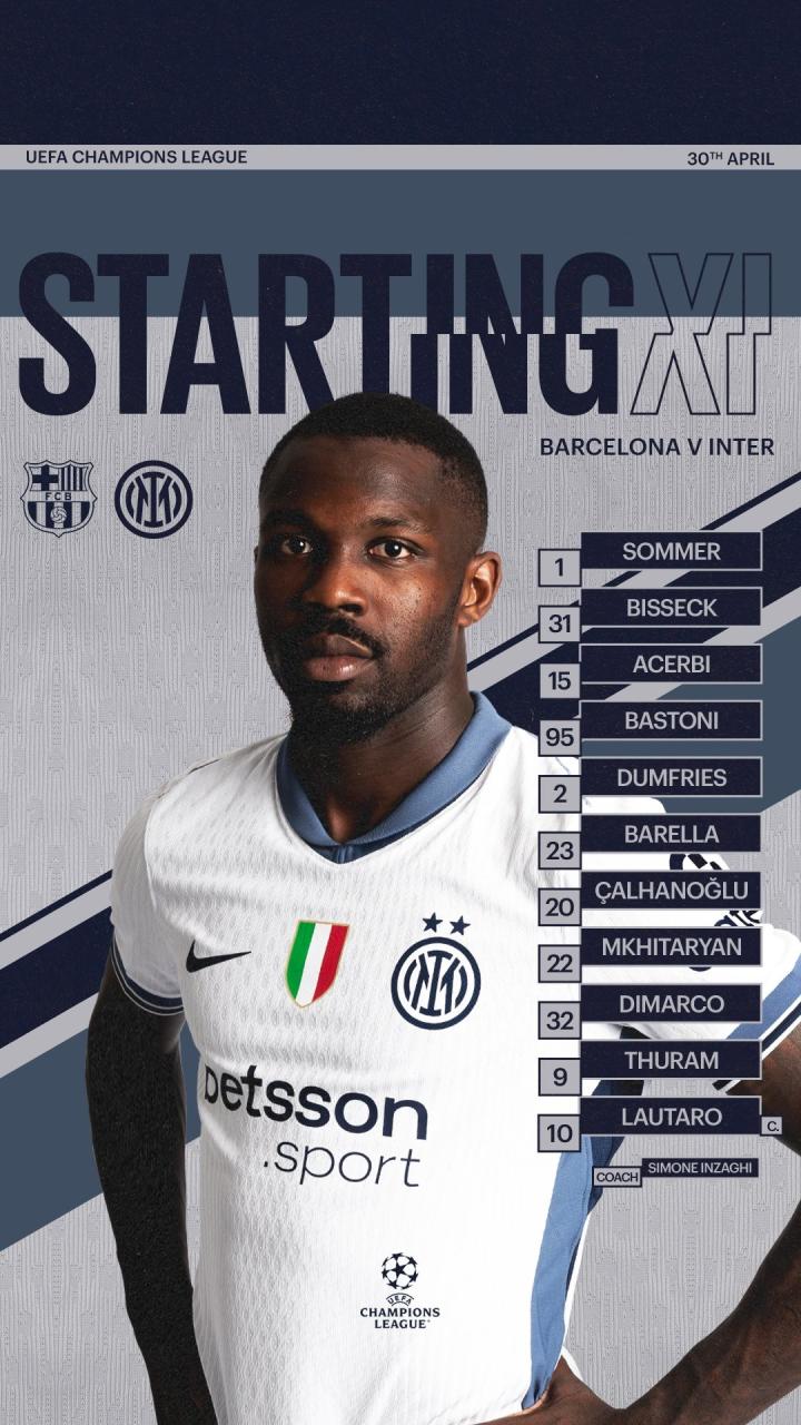 国米本场比赛的首发阵容包括了现年36岁的索默、37岁的阿切尔比、31岁的恰尔汗奥卢以及36岁的姆希塔良,年龄最小的则是24岁的比塞克,首发11人平均年龄达到了30岁56天。