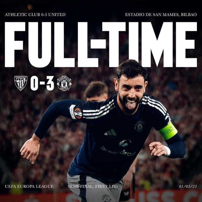 此役客场对阵毕尔巴鄂竞技,曼联凭借布鲁诺-费尔南德斯上演梅开二度和卡塞米罗打入一球,3-0击败对手,占得晋级先机。