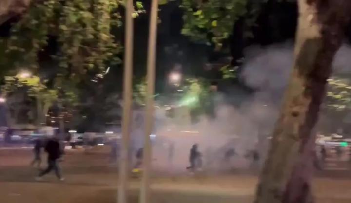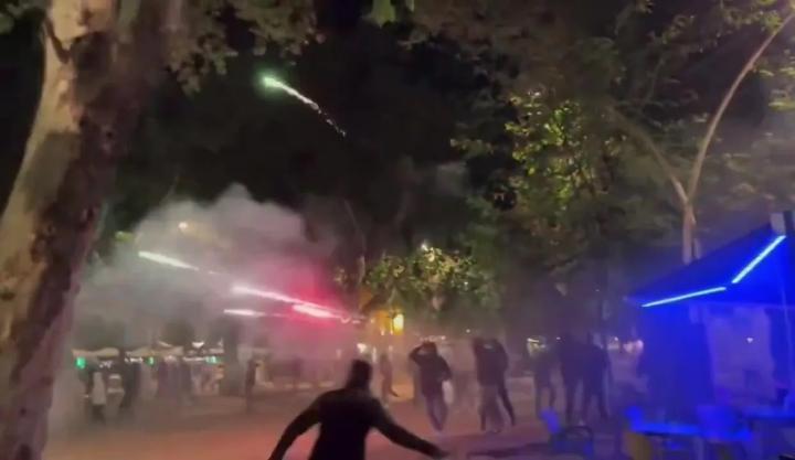 视频片段显示,两队支持者产生了令人震惊的争斗,一名男子手持武器,连续不断地向对方团体发射烟花。随后,被射的球迷也点燃了烟花还击,连椅子都被炸飞了起来。