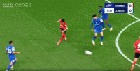 第45+6分钟,米内罗带球冲击被四人包夹,元敏诚犯规染黄