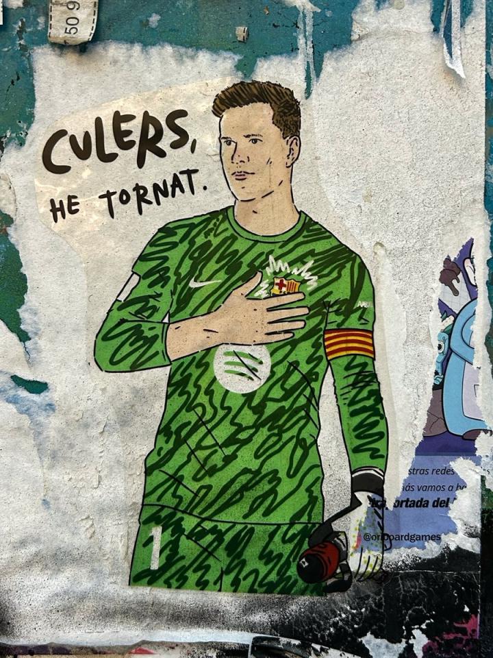 北京时间今日凌晨,特尔施特根更新社交媒体晒出一张墙壁涂鸦画,并配文:“巴萨球迷们,我回来了💙❤️”