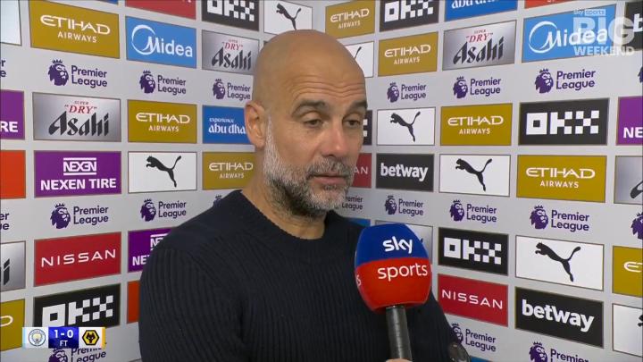 率队在英超第35轮主场1-0击败狼队之后,曼城主教练瓜迪奥拉接受了来自天空体育的采访。