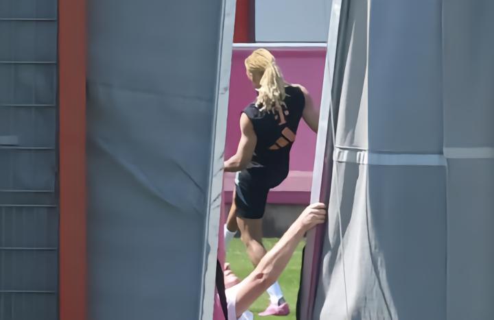 本次训练为秘密训练,但《图片报》通过遮挡物之间的缝隙窥探到了博埃全新的发色。此前博埃的发型是黑色的脏辫,现在他将他的头发染成了金色。