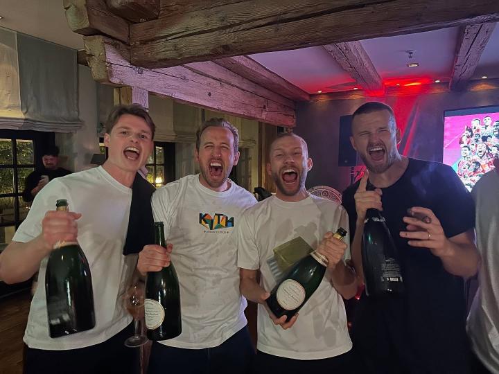 这位奥地利中场在社交媒体晒出了他与和他同样首次夺得德甲冠军的凯恩、戴尔、乌尔比希的合照。
