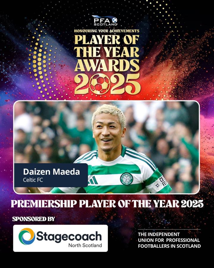 北京时间5月5日,苏格兰球员工会官方宣布,凯尔特人球员前田大然击败队友麦格雷戈、尼古拉斯-库恩以及邓迪FC前锋西蒙-穆里,成功当选PFA苏超年度最佳球员。