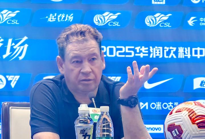 北京时间5月5日,中超第11轮梅州客家vs上海申花的赛前新闻发布会在梅州举行。上海申花队主教练斯卢茨基携队员陈晋一出席。