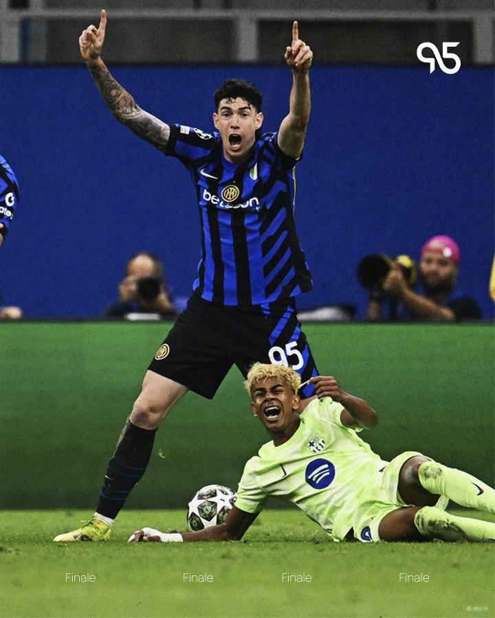 欧冠半决赛两回合对阵巴塞罗那,巴斯托尼都是作为左中卫首发出战并打满全场,而他直接对位的巴萨右边锋亚马尔同样打满了两场比赛的每一分钟。