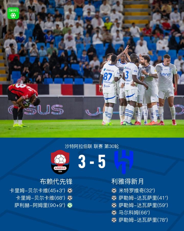 新月5-3布赖代先锋,达瓦萨里戴帽,米特罗维奇、马尔科姆建功