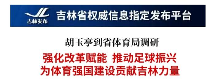 吉林发布(吉林省人民政府新闻办公室官方公众号)报道,5月8日,吉林省委副书记、省长胡玉亭就体育事业发展工作到吉林省体育局调研,并主持召开促进体育事业发展专题会议,重点研究足球振兴发展工作。