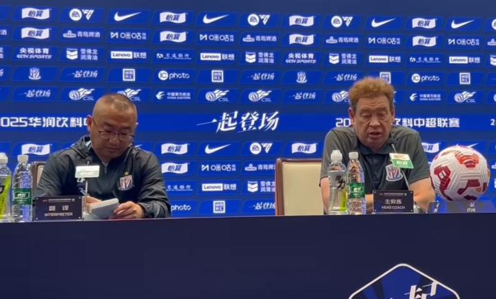 北京时间5月9日,在中超第12轮,上海申花主场对阵青岛西海岸的赛前,申花主帅斯卢茨基和队员刘诚宇出席了新闻发布会。