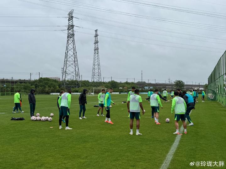 据该博主消息,国安基地目前正在下雨,同时在图片中也可以看到,国安5名外援全部参加了抢圈训练。