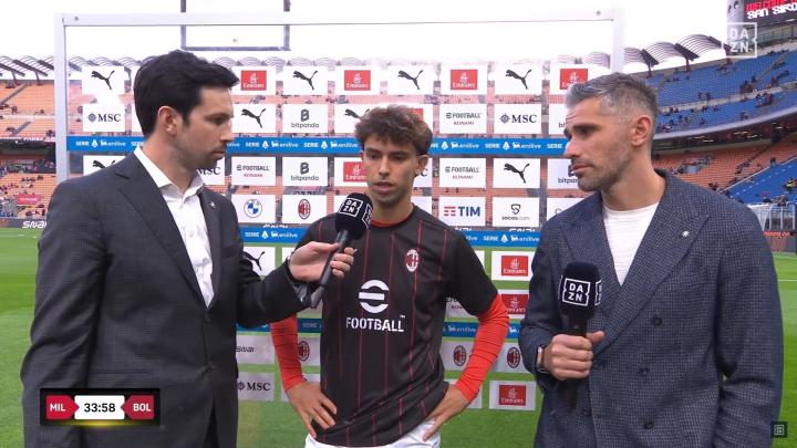 米兰在意甲第36轮主场迎战博洛尼亚的比赛即将开始,菲利克斯在赛前接受了DAZN的采访。