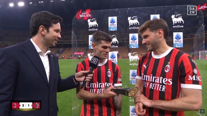 米兰在意甲第36轮主场3-1击败博洛尼亚,传射建功的普利希奇在赛后接受了DAZN的采访。