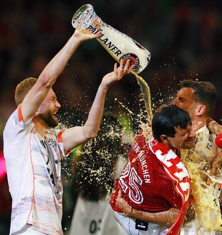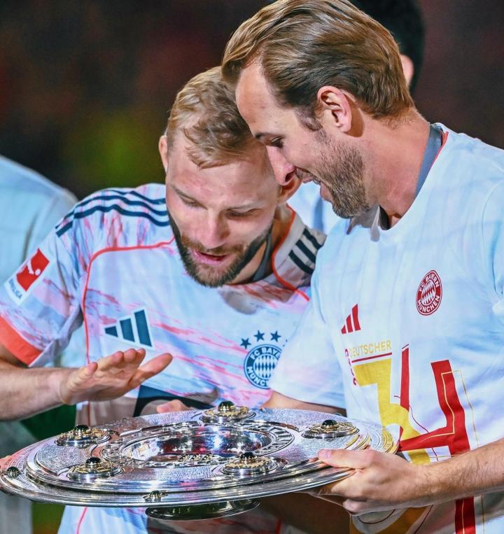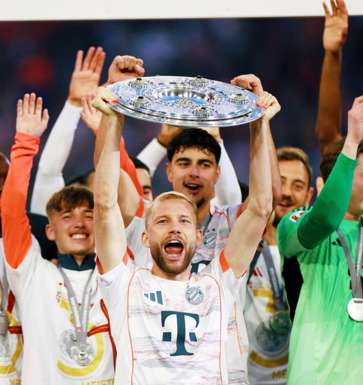 在拜仁夺得2024-25赛季德甲冠军后,莱默尔收获职业生涯首座德甲冠军。