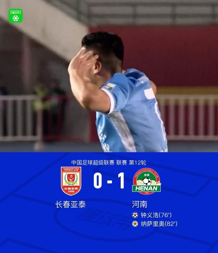 河南客场1-0亚泰终结三连败,钟义浩制胜球,纳萨里奥丢点
