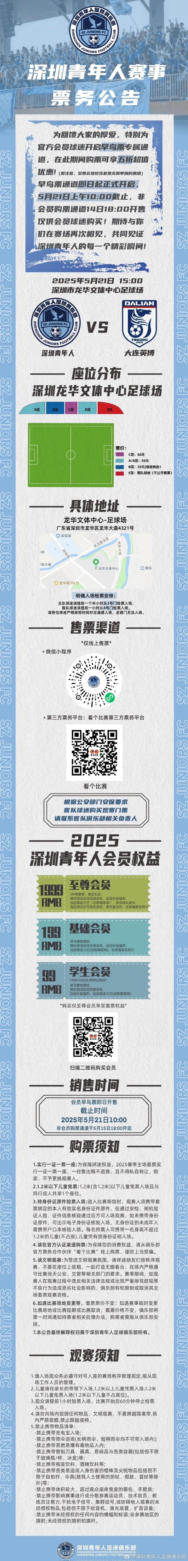 北京时间5月14日,中甲深圳青年人官方发布足协杯主场对阵大连英博的票务公告。