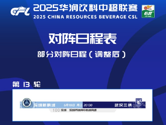 北京时间5月16日,中超官方宣布原定于5月17日18:00进行的新鹏城vs三镇一役推迟至6月18日20:00。若两队均在本轮足协杯成功晋级,按原定赛程那么双方均面临一周双赛。