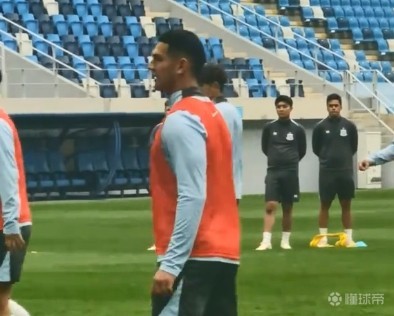 赛前踩场训练,路易斯穿着代表替补的背心,看来他的伤情并未完全康复,刘诚宇大概率将继续首发。