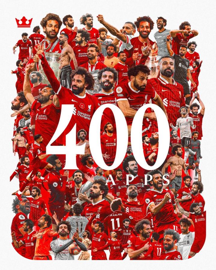 此役客场对阵布莱顿,萨拉赫作为队长首发出战,迎来利物浦生涯各项赛事第400次出场。