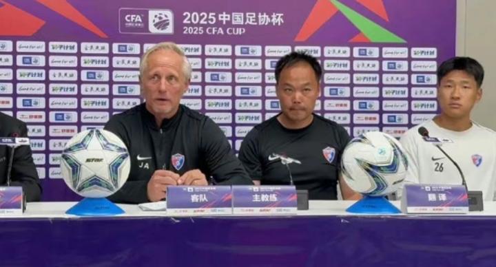 北京时间5月20日,在足协杯第三轮,云南玉昆客战定南赣联的赛前,云南主帅安德森和队员张宸梁出席了新闻发布会。