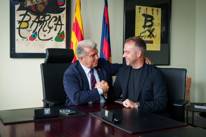 拉波尔塔在社交媒体晒出他和弗里克在续约现场握手的照片,并写道:“汉斯(弗里克),谢谢你继续书写世界上最伟大的俱乐部——巴塞罗那的辉煌历史。巴萨球迷爱你,我们相信你能继续带领我们的球员走向胜利!”