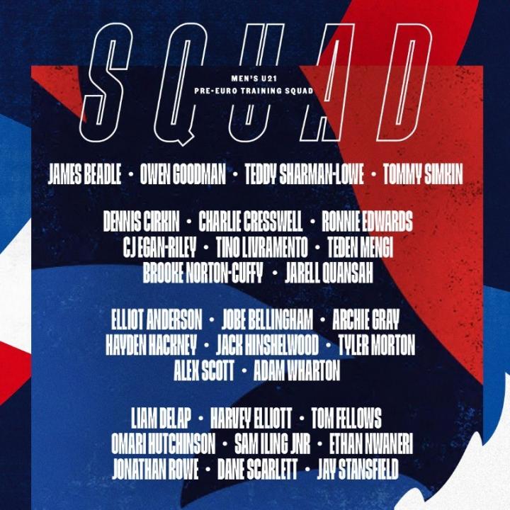 北京时间5月23日,英格兰U21公布欧青赛集训名单,恩瓦内里、小贝林、阿奇-格雷、埃利奥特、布兰斯韦特在列。