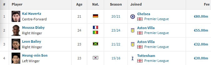 据德国转会市场的数据统计,若维尔茨加盟红军成行,勒沃库森俱乐部历史转出转会费最高的前五名球员都会前往英超联赛的俱乐部。