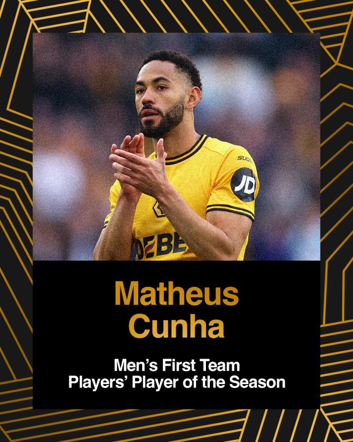 北京时间5月25日,狼队官方公布了本赛季赛季最佳奖项的获得者,其中,马特乌斯-库尼亚当选球员票选赛季最佳球员。