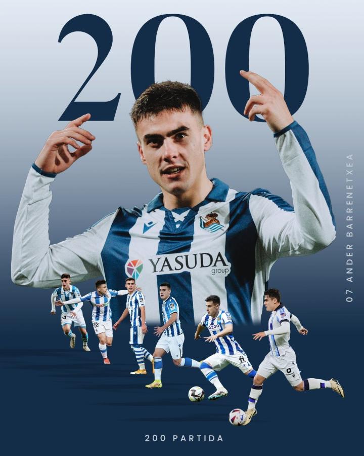 比赛的第71分钟,皇家社会攻击手巴雷内切亚替补登场换下塞尔希奥-戈麦斯,完成了自己在皇家社会一线队200场纪念。