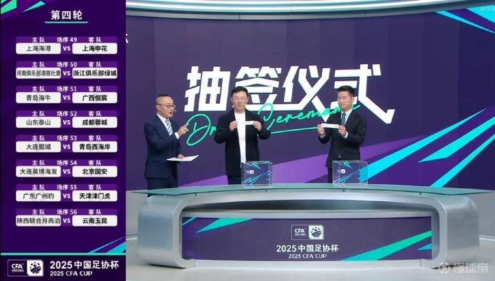 北京时间5月27日下午,2025足协杯1/8决赛对阵双方已经全部出炉。