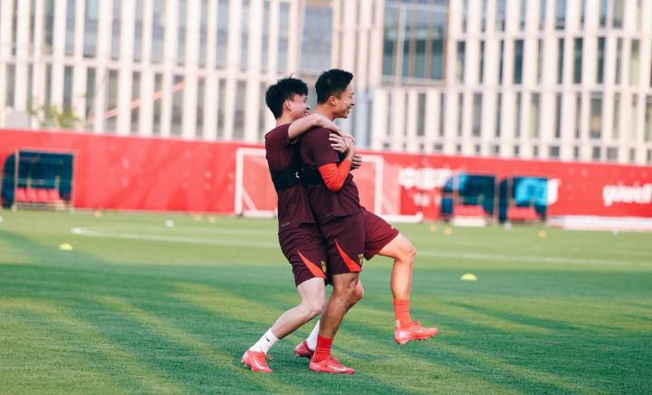 北京时间5月27日晚,中国男足国脚杨泽翔在社交媒体里晒出国家队训练照,配文写着:“全力备战✊”