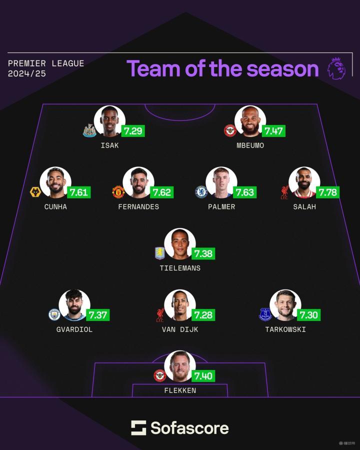 近日,知名足球数据网站Sofascore公布了其评选的24/25赛季英超最佳阵容。伊萨克、萨拉赫、帕尔默等一众攻击手领衔,英超亚军阿森纳无人入选。