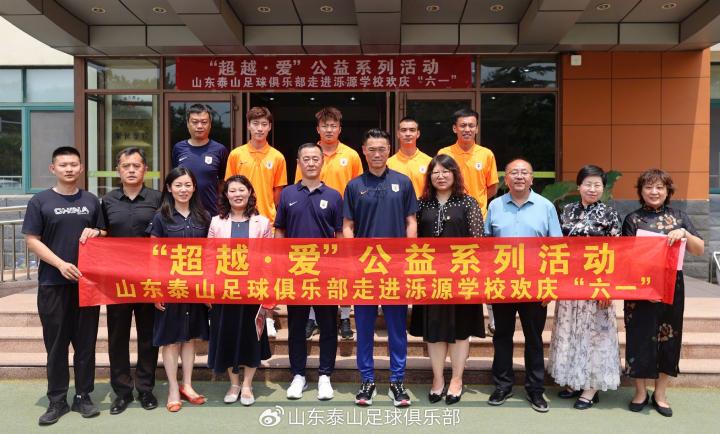 5月28日上午,值此第76个“六一”国际儿童节之际,山东泰山足球俱乐部联合山东省体育记者协会来到济南市泺源学校举办“特别的爱给特别的你”超越·爱六一关爱特殊儿童公益活动。俱乐部副总经理宿茂臻,竞赛训练部主任范学伟,球员代表张弛、刘彬彬、赵剑非和刘国宝参加了活动。