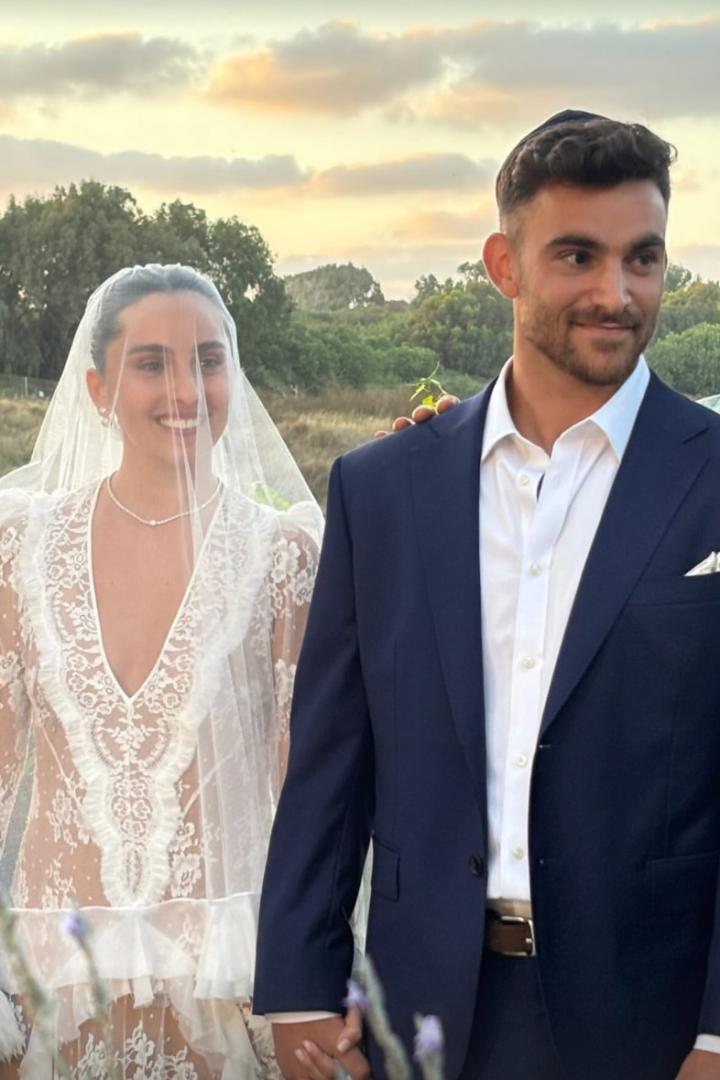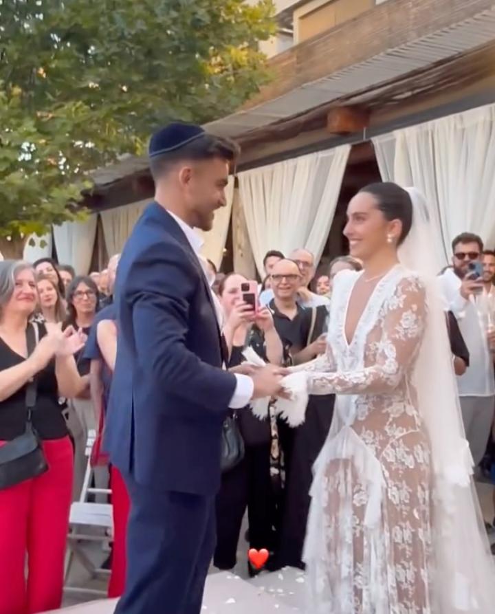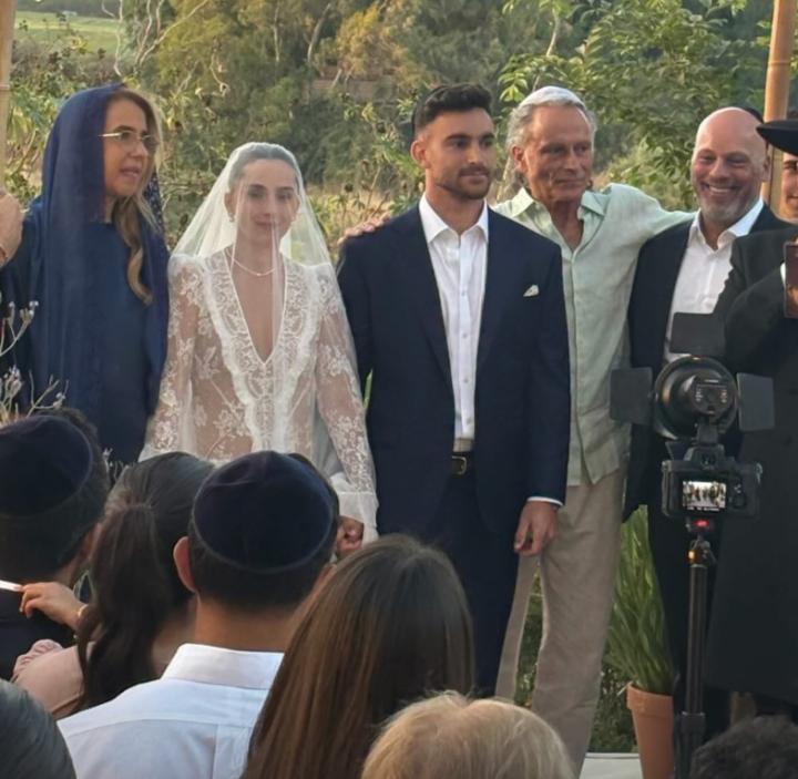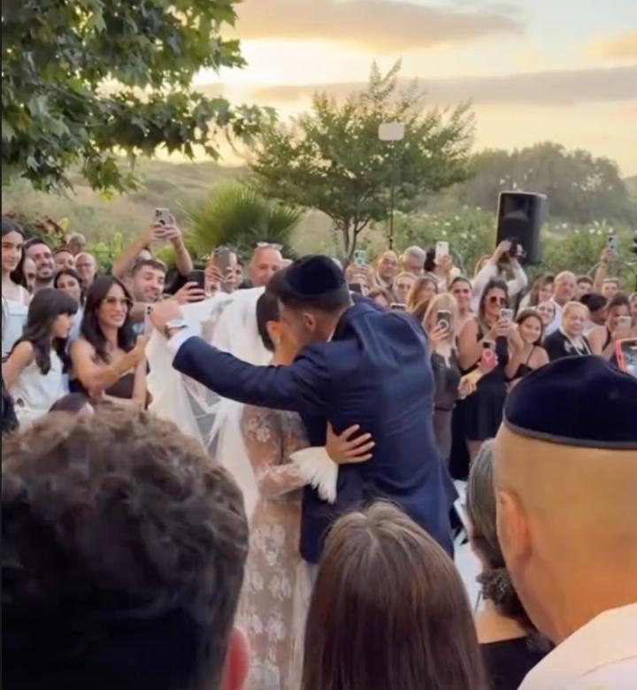 古尔芬克尔晒出的动态里,现场亲友云集,气氛热烈,古尔芬克尔走到妻子身前,为她整理头纱,然后两人亲密拥吻。
