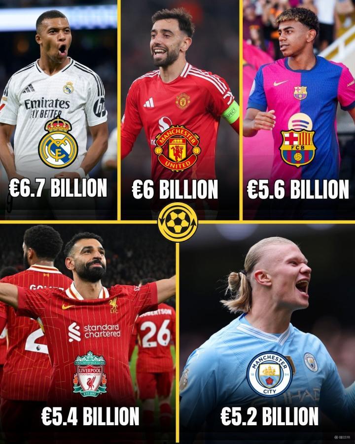 俱乐部价值:60亿美元,收入:8.34亿美元,税息折旧及摊销前利润:1.86亿美元,债务占价值的百分比:11%,所有者:格雷泽家族,吉姆-拉特克利夫爵士