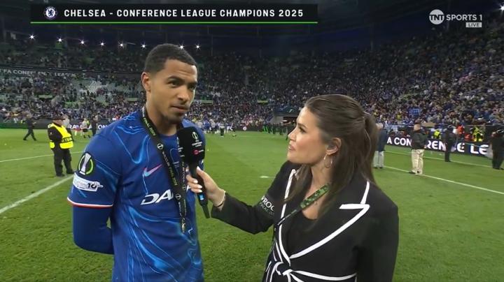 切尔西在欧协联决赛4-1击败了皇家贝蒂斯夺冠。赛后,后卫科尔威尔接受了TNT体育的采访。
