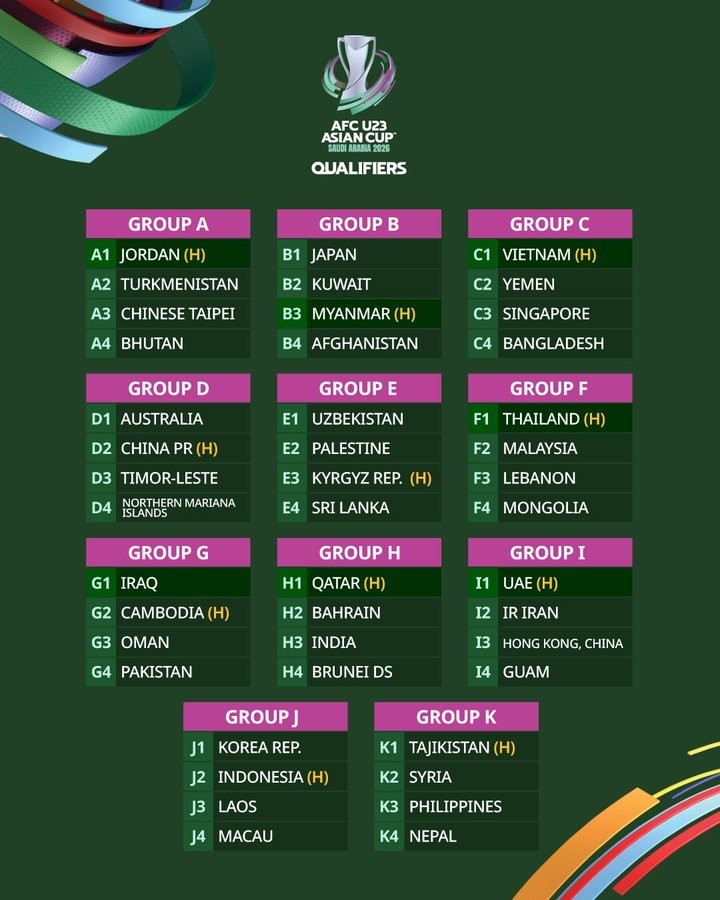 北京时间5月29日,2026亚足联U23亚洲杯预选赛抽签仪式在马来西亚吉隆坡的亚足联总部举行,最终中国U23与澳大利亚、东帝汶和北马里亚纳群岛同居D组。