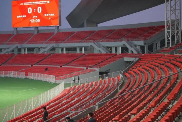 红色座椅的看台与绿色草皮的色调搭配相比原来的蓝色座椅、绿色草皮搭配看上去更加舒适,东区看台用黄色座椅拼出的“沈阳铁西”大字格外醒目。