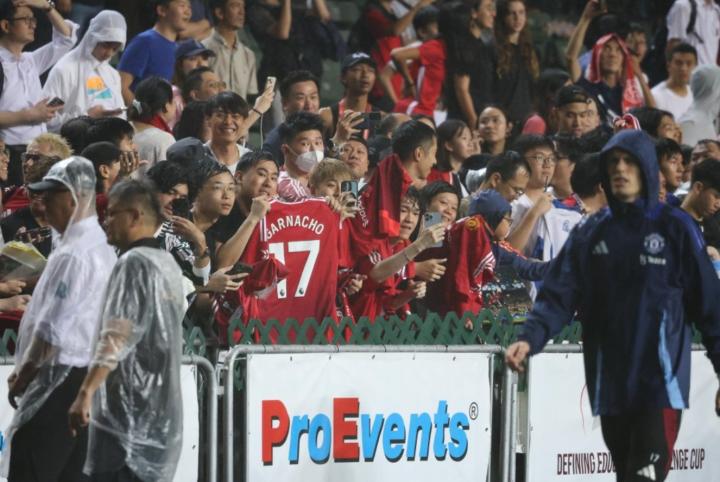 港媒指出,由于曼联大部分球员在马来西亚都有上阵,香港训练只有8名球员参与,其余球员给球迷签名后便走入球员通道离开,其中卡塞米罗、霍伊伦、加纳乔等人率先返回更衣室,队长B费是最后一个离开的球员,因为天气原因,原定一小时的训练最终约半小时就结束了。