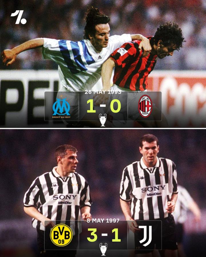 1993年欧冠决赛是欧洲冠军杯改制为欧冠联赛后的首届决赛,于1994年5月26日在慕尼黑奥林匹克体育场举行。马赛凭借着后卫博利在比赛第43分钟打进的头球1-0战胜AC米兰,捧起了队史首座欧冠奖杯。这也是法国球队在历史上首次赢得欧冠,也是迄今为止仅有的一次。