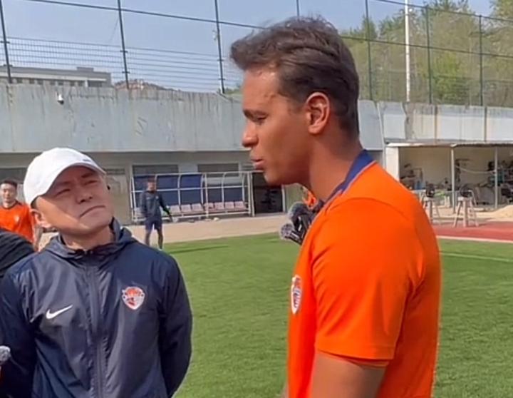 5月29日下午,青岛海牛足球俱乐部对媒体开放了两个小时的训练课。期间,青岛海牛队外援菲利佩-奥古斯托接受了媒体记者的采访。