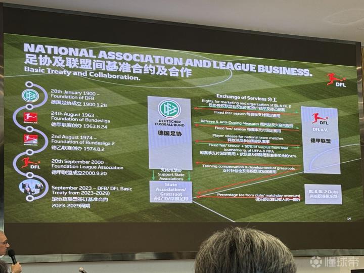 德甲联盟高级顾问彼得-莱博乐带来了《德甲联盟管理及俱乐部合作》。据介绍,德国足协与德甲联盟之间有签订基准合约,在分工上也十分明确。德国足协会授权联盟组织和推广联赛,而联盟则会每赛季支付固定费用供足协支持低级别赛事。足协也会为联盟提供服务……德国足协与德甲联盟之间的分工关系,也为中足联与足协之间的分工安排,提供了参考。